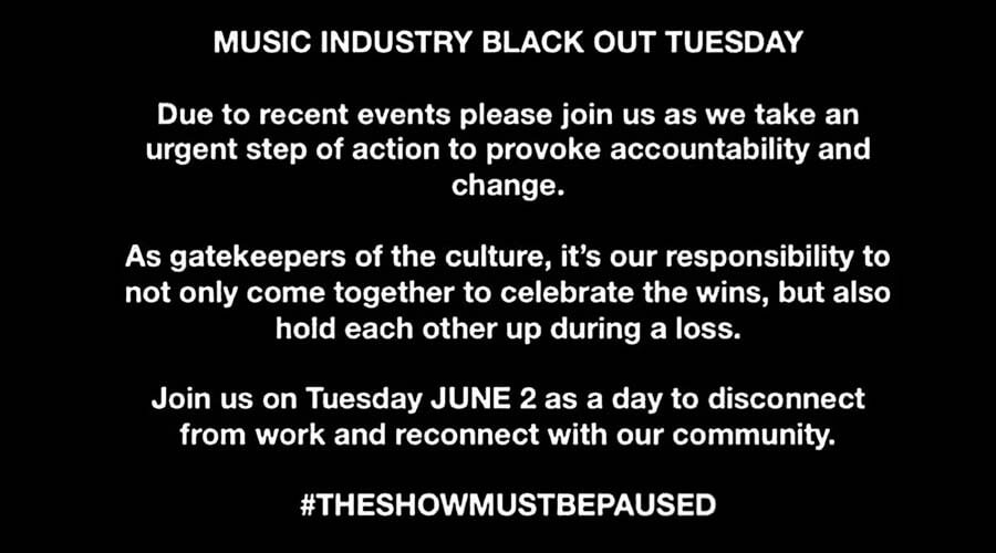 Varios sellos discográficos organizaron para el martes “Black Out Tuesday” mientras las revueltas estallaban alrededor del mundo en respuesta a la muerte de Floyd, Ahmaud Arbery y Breonna Taylor. Las compañías Live Nation y TikTok, así como la Academia de la Grabación, también publicaron en redes sociales que planean apoyar y respaldar a la comunidad afroamericana.