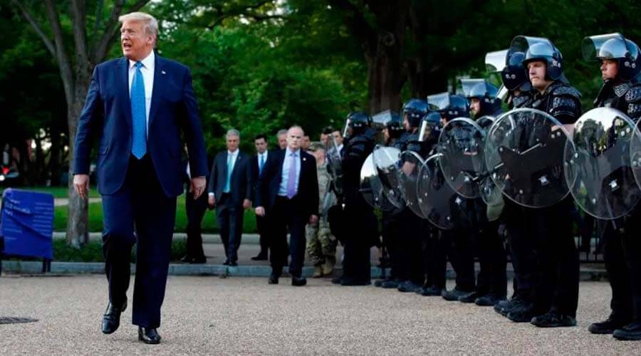 El mandatario indicó que lo que ha sucedido en la última semana «no son protestas pacíficas, esto es terrorismo nacional”. TRas su intervención en la Casa Blanca, el presidente Trump cruzó a la Iglesia de Saint John dañada durante los disturbios y, levantando una Biblia, dijo «vamos a salir muy fuertes de esta situación».
