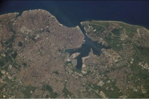 La Habana creció alrededor de su puerto en la bahía del mismo nombre. La ciudad más poblada de la isla, con cerca de 2.5 millones de habitantes, ofrece esta espectacular vista desde el espacio. La fotografía, tomada en octubre del 2002, fue cedida por el Laboratorio de Análisis de Imágenes y Ciencias de la Tierra del Centro Espacial Johnson.