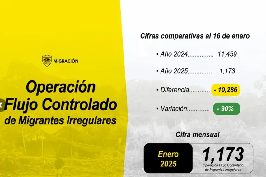 La Operación de Flujo Controlado de Migrantes Irregulares de Panamá informó que hasta el 16 de enero 2025, atravesaron por la selva del Darién 1,173 personas frente a las 11,459 que lo hicieron en igual período en 2024.